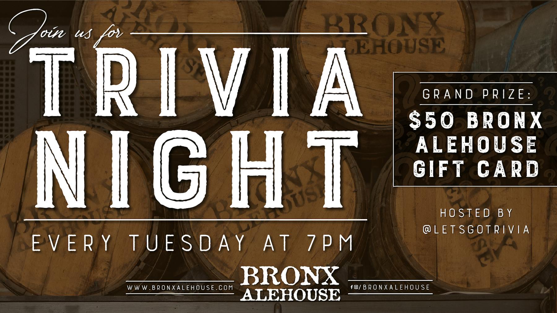 Web TRIVIA NIGHT Bronx Alehouse. 718 878-4951 Game On Trivia. Web Lets Go Trivia Nights at Bronx Alehouse.